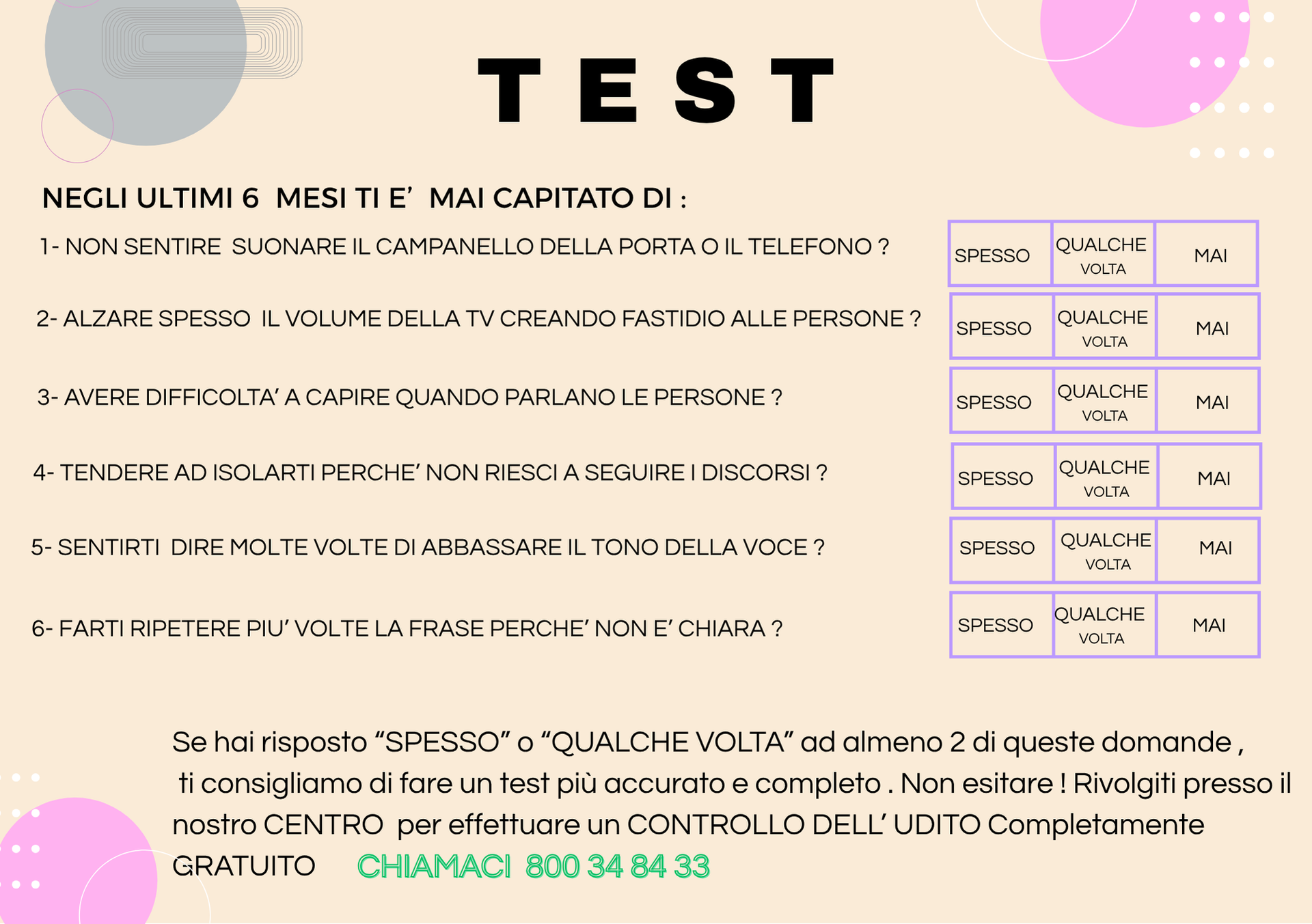Ti invitiamo a visitare la nostra sede per un test dell'udito gratuito. I nostri esperti qualificati saranno lieti di fornirti le migliori soluzioni per il tuo udito.